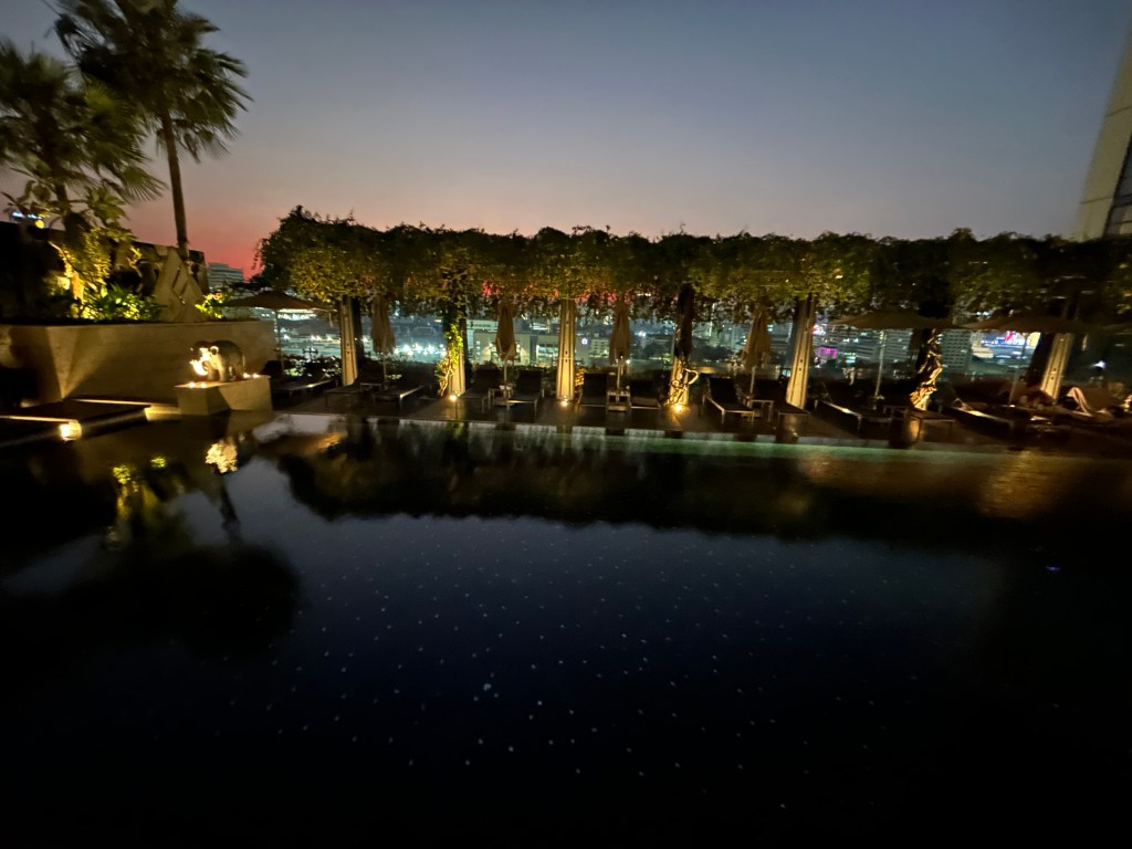 The St. Regis does not have a club lounge, but still offers an exclusive experience for Marriott Bonvoy Platinum Elite members and higher. Located at the St. Regis Bar from 5-10pm, two drinks and an assortment of Thai and Western snacks is offered. The travelers recommend the aptly named Titanium Elite cocktail. However, for all guests, each night around sunset at the St. Regis Bar’s outside seating area, the hotel offers an evening sabering which also includes a free glass of champagne. The picturesque evening offered an opportunity for guests to start their evenings in the Oriental City with a pop.
