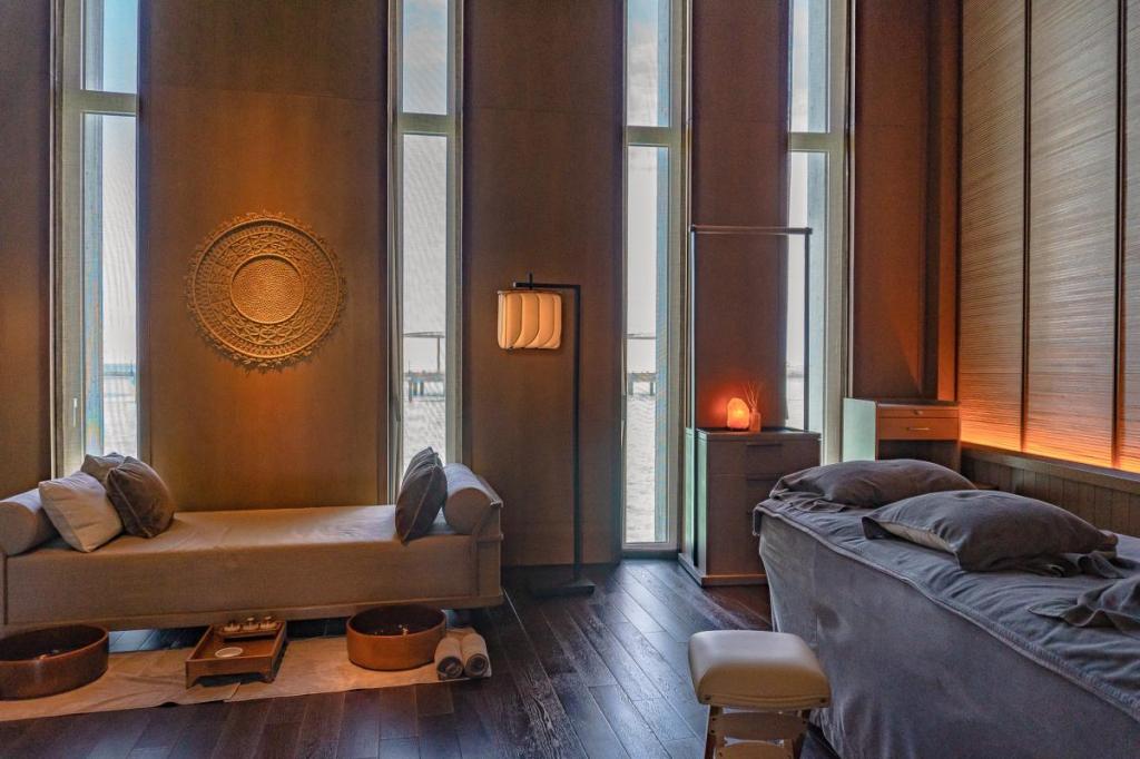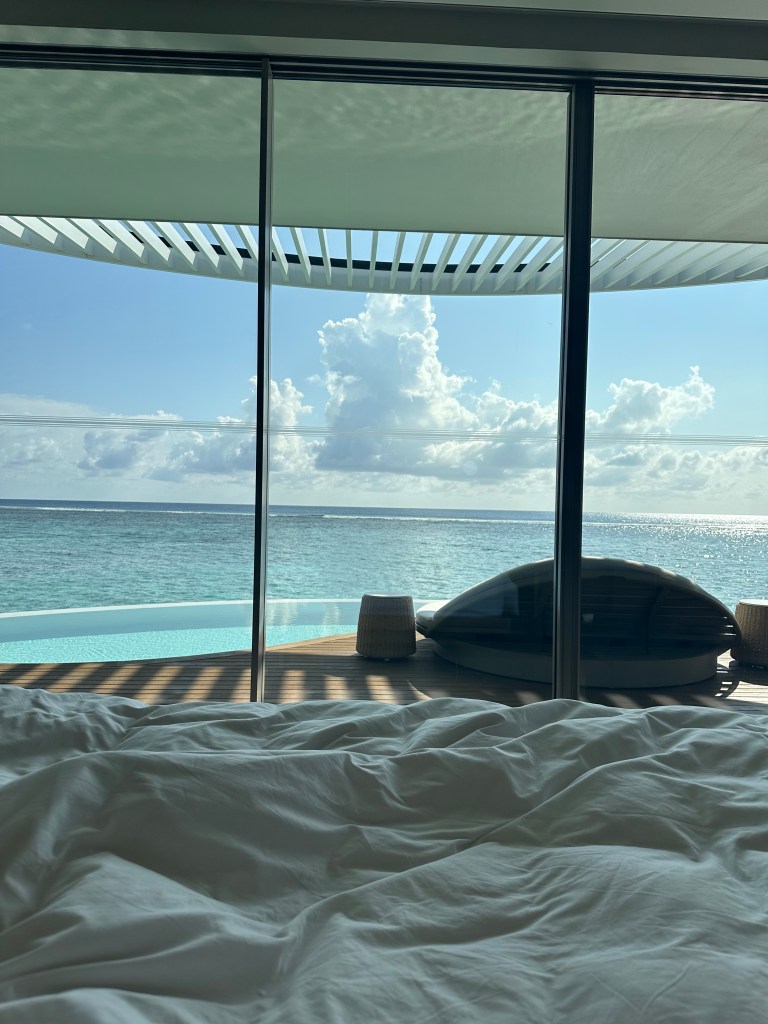 For their stay, these travelers stayed an overwater villa, which was stunning. The villa is meticulously designed to offer breathtaking views of the crystal clear water and pristine white sand beaches. Perched on stilts above the ocean, the villas create a sense of tranquility and seclusion and blend perfectly in with its surroundings, a true mix of island living and modern luxury. The floor-to-ceiling glass doors fully open, creating an indoor-outdoor space of more than 1,600 square feet.